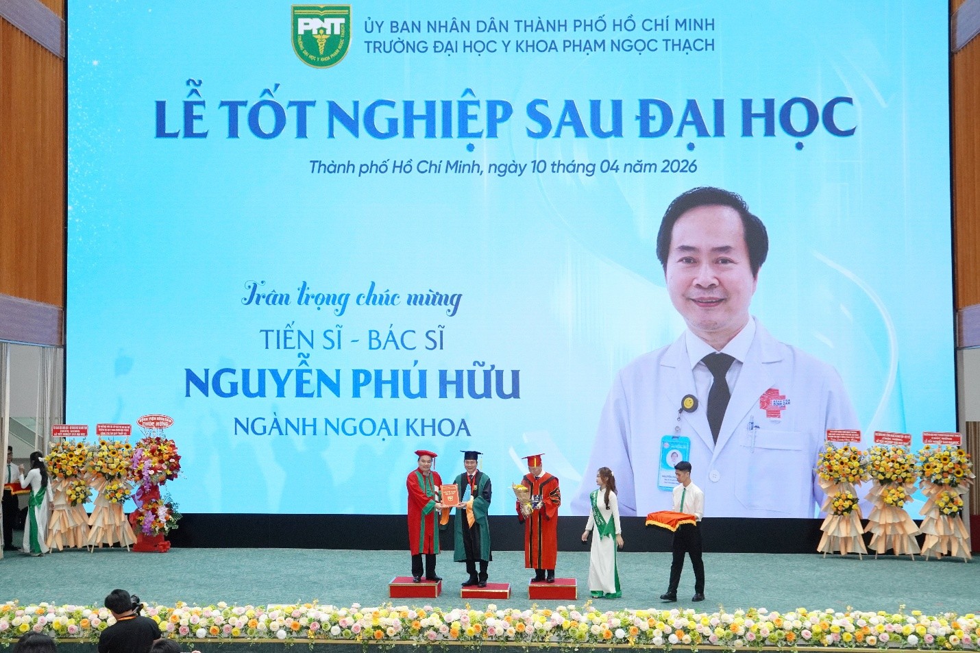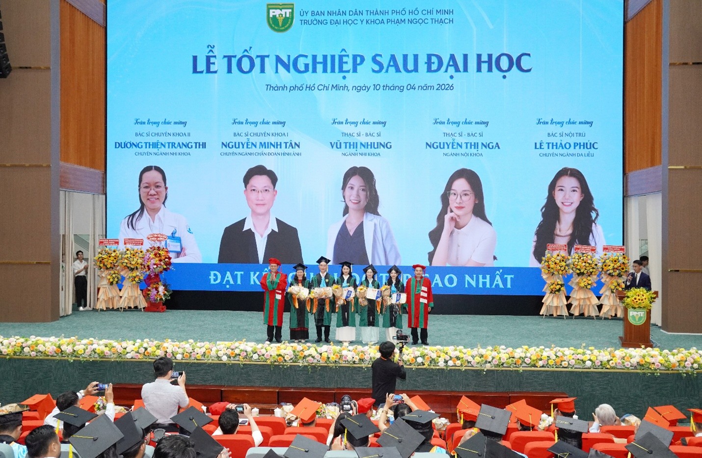 Thay mặt Ban Giám hiệu, Trường Đại học Y khoa Phạm Ngọc Thạch xin gửi lời chúc mừng nồng nhiệt nhất đến toàn thể 945 tân khoa. Chúc các anh chị luôn giữ vững bản lĩnh, sự tử tế và y đức trọn vẹn. Hy vọng rằng, những tri thức tích lũy dưới mái trường mang tên Bác sĩ Phạm Ngọc Thạch sẽ được chuyển hóa thành hành động, trở thành giá trị phục vụ nhân sinh, góp phần nâng tầm chất lượng y tế của TP. Hồ Chí Minh nói riêng và Việt Nam nói chung.
