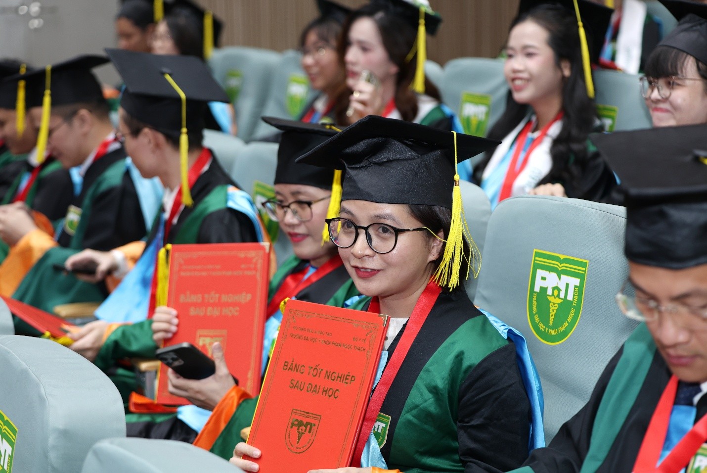 Buổi lễ tự hào vinh danh 945 tân khoa xuất sắc, trong đó bao gồm: 05 Tiến sĩ, 111 Thạc sĩ, 164 Chuyên khoa II, 554 Chuyên khoa I và 111 Bác sĩ Nội trú. Nếu hệ Đại học là nơi ươm mầm tài năng trẻ, thì bậc Sau Đại học chính là nơi Nhà trường tôi luyện nên những chuyên gia tinh hoa trong lĩnh vực khoa học sức khỏe, đáp ứng yêu cầu cung cấp nhân lực trình độ cao cho xã hội.