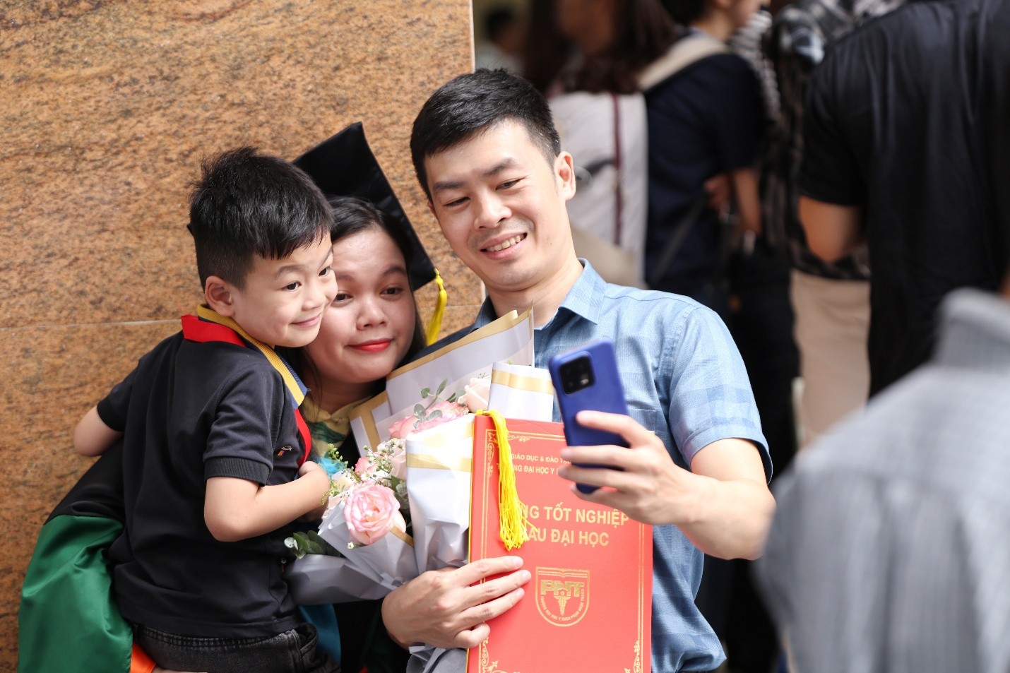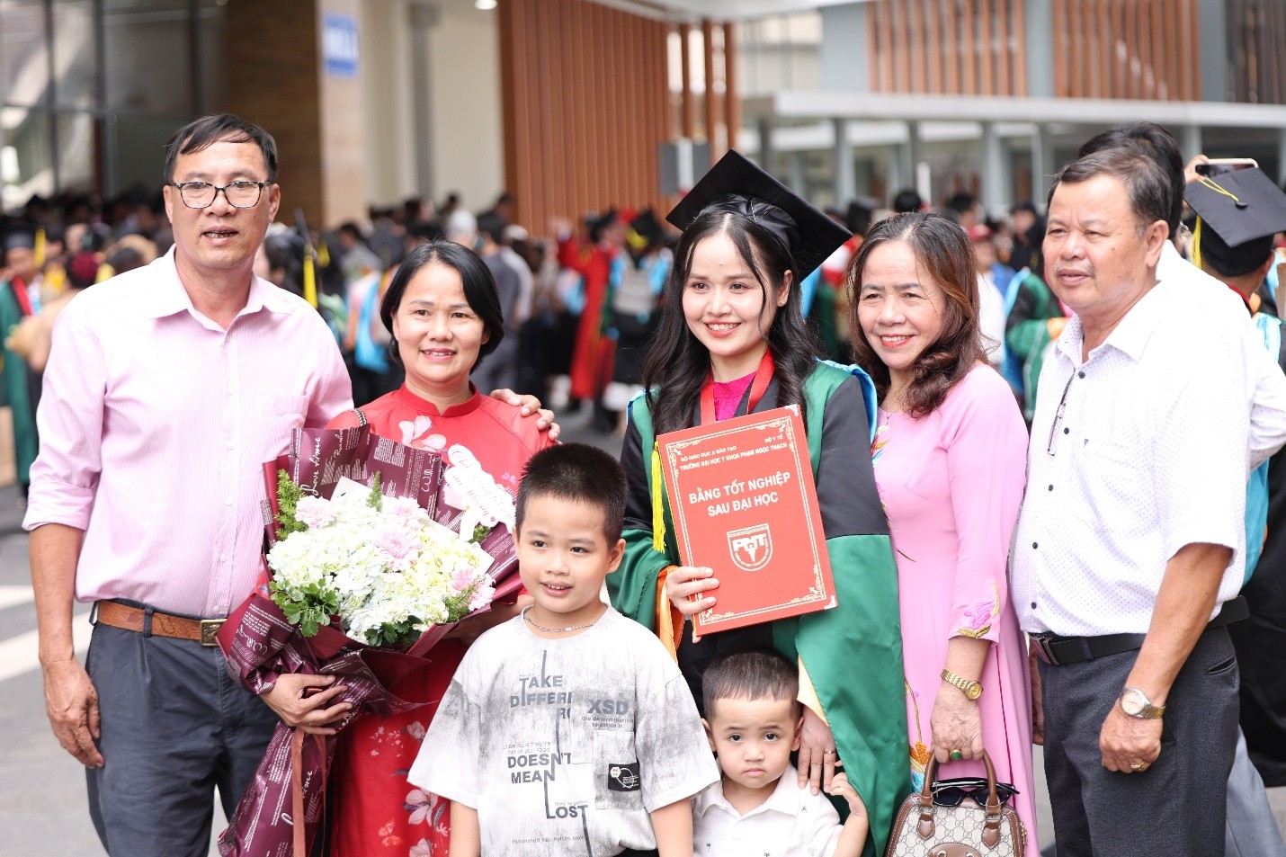 Nụ cười rạng rỡ và hạnh phúc của các Tân khoa PNTU cùng với Thầy Cô, bạn bè, gia đình trong buổi Lễ Tốt nghiệp Sau Đại học. (Ảnh: VPT)