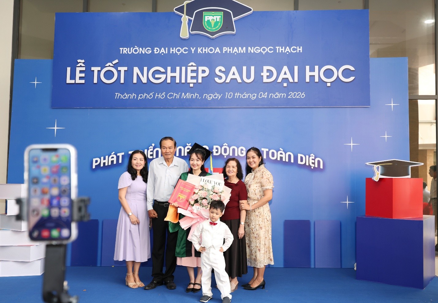 Để buổi lễ hôm nay thành công viên mãn, Nhà trường xin gửi lời tri ân sâu sắc đến đội ngũ Thầy Cô giáo, các giảng viên hướng dẫn đã âm thầm đồng hành, tận tâm đổi mới phương pháp giảng dạy để truyền đạt tri thức cho học viên trong suốt chặng đường khó khăn vừa qua. Xin trân trọng cảm ơn các bệnh viện, đơn vị thực hành lâm sàng - những "giảng đường thực tiễn" đã giúp học viên rèn luyện tay nghề vững vàng. Và đặc biệt, xin tri ân những người thân, gia đình đã luôn là điểm tựa vững chắc để các tân khoa đi đến thành công trọn vẹn ngày hôm nay.
